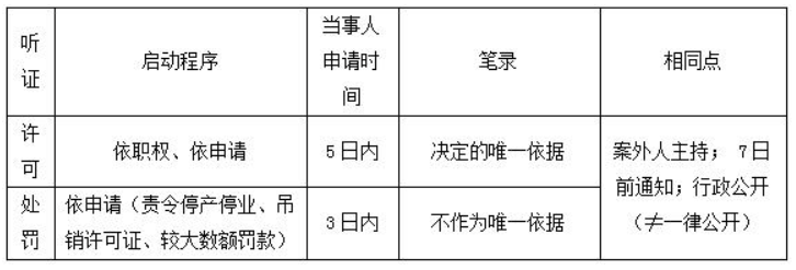 综合行政处罚和行政许可的听证程序,我们用下列表格来区分记忆。