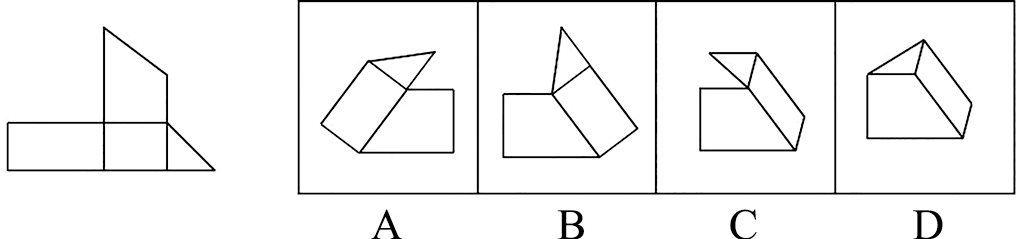 下图和哪个选项一起可以拼接成一个封闭立体图形?