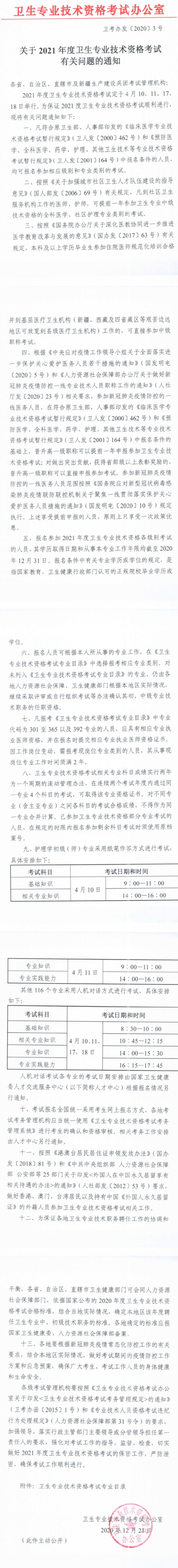 关于2021年度卫生专业技术资格考试有关问题的通知
