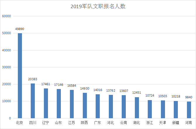 2019军队文职报名已结束!全国33万人报名,湖北1.2万人报名。下面就让我们来看一下招聘的最大竞争比,招聘的十大热门岗位,各省的招考的报名人数比等的情况。