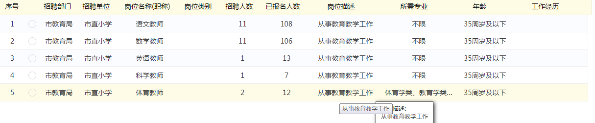 岗位见《鄂州市2021年市直小学公开招聘教师岗位表》。