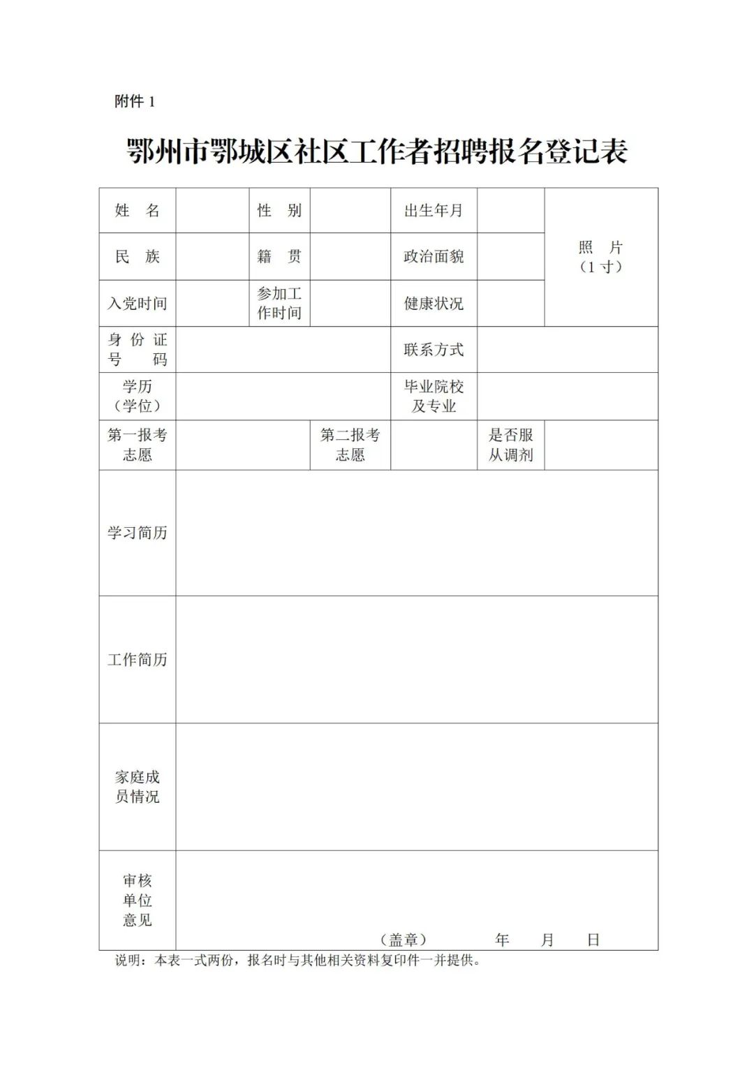 1.鄂州市鄂城区社区工作者招聘报名登记表