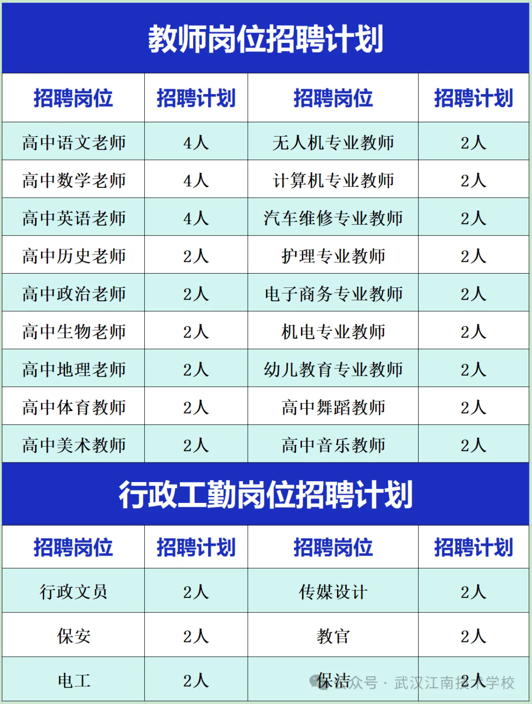 原标题:2025年武汉江南技术学校招聘公告【60人】