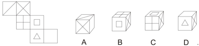 26.左边给定的是纸盒的外表面,下列能由它折叠而成的是( )。