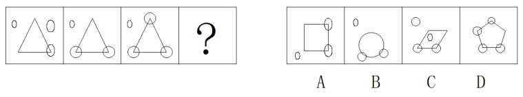 【解析】本题考查数量类。图1到图3与三角形相交的圆依次有1、2、3个,因此?处选择4个圆与三角形相交。因此,选择d选项。
