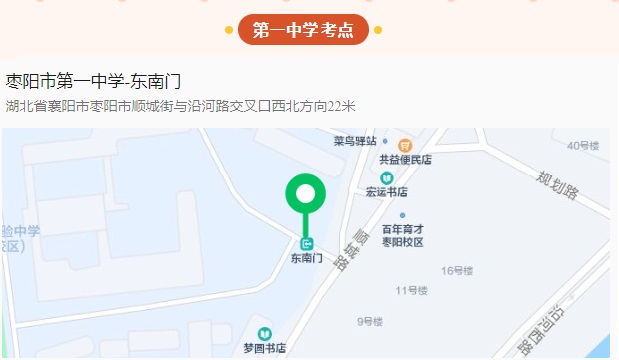 欢迎各地的考生来枣阳,小编贴心地为各位考生整理了一份考点地图详细攻略,祝大家考的全会、 蒙的全对、高分不累、超常发挥、考神附体、逢考必过。