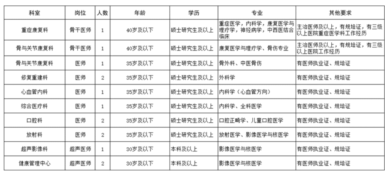 根据医院发展规划,按照公开、平等、竞争、择优的原则,现面向社会公开招聘工作人员,具体如下: