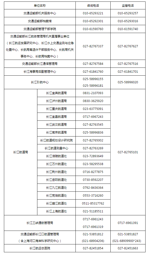 (二)交通运输部所属事业单位2025年度第二批统一公开招聘工作各招聘单位报名联系电话: