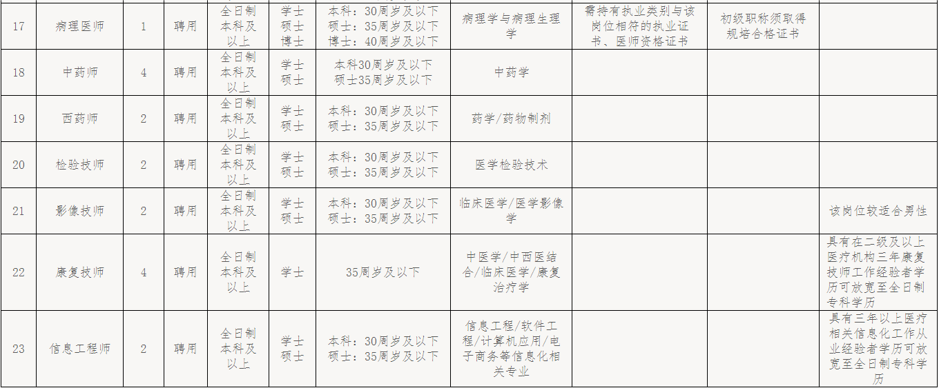 详见附件《2024年鄂州市中医医院招聘岗位表》。