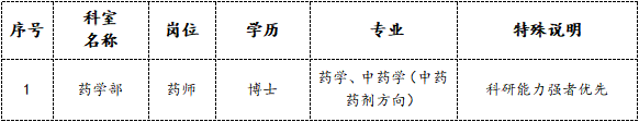 根据医院发展需要,现面向社会招聘人才:
