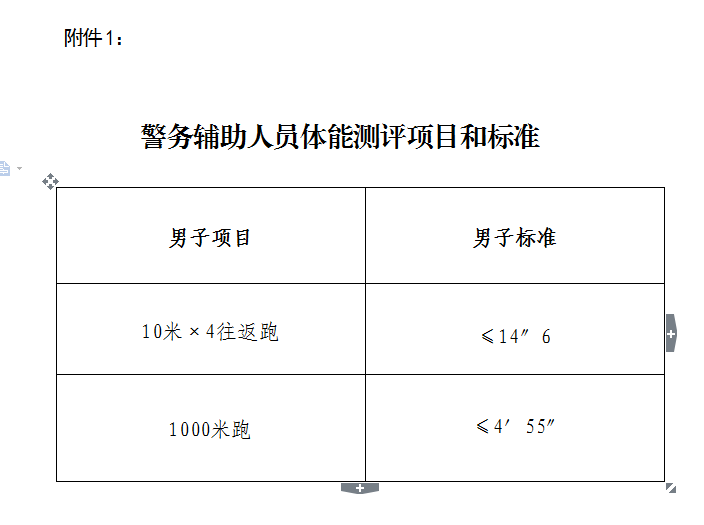 附件1:警务辅助人员体能测评项目和标准