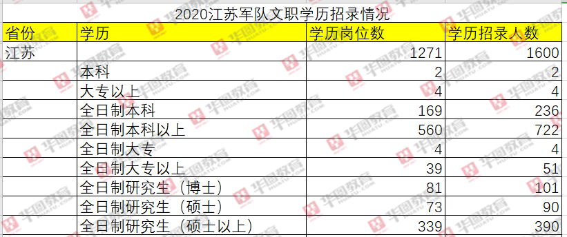江苏军队文职学历招录情况