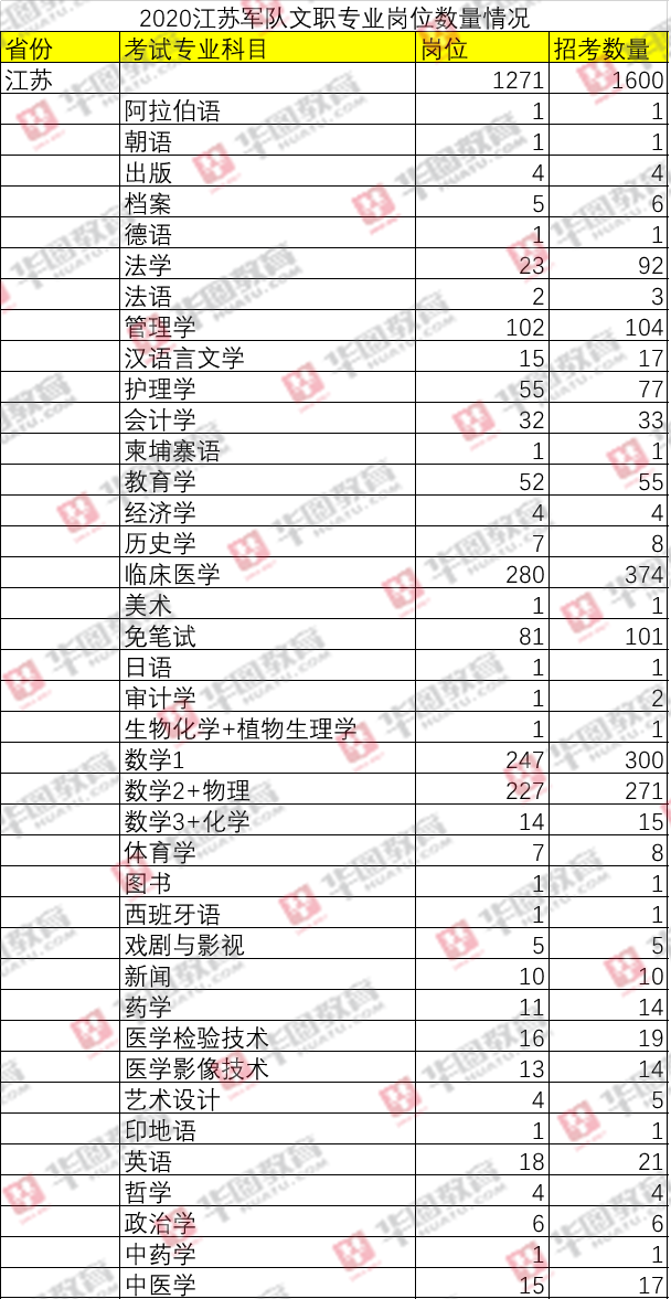 江苏军队文职岗位数量情况