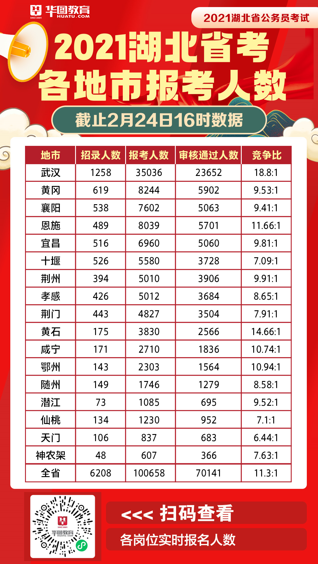| 2021湖北省公务员考试报名人数统计-2021-2-24 | ||||||