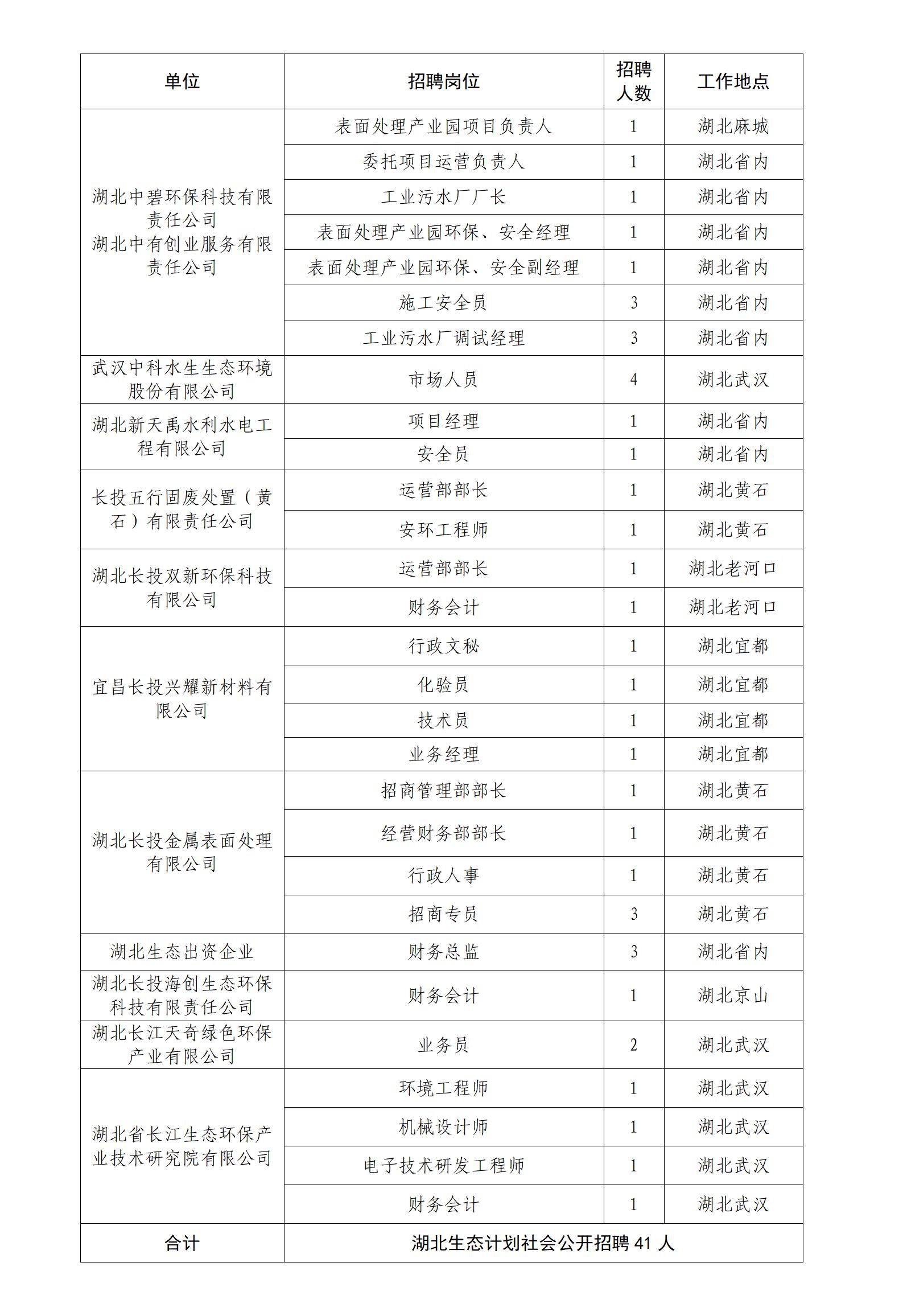 岗位职责及任职资格详见附件1《湖北省生态环保有限公司公开招聘岗位信息》。