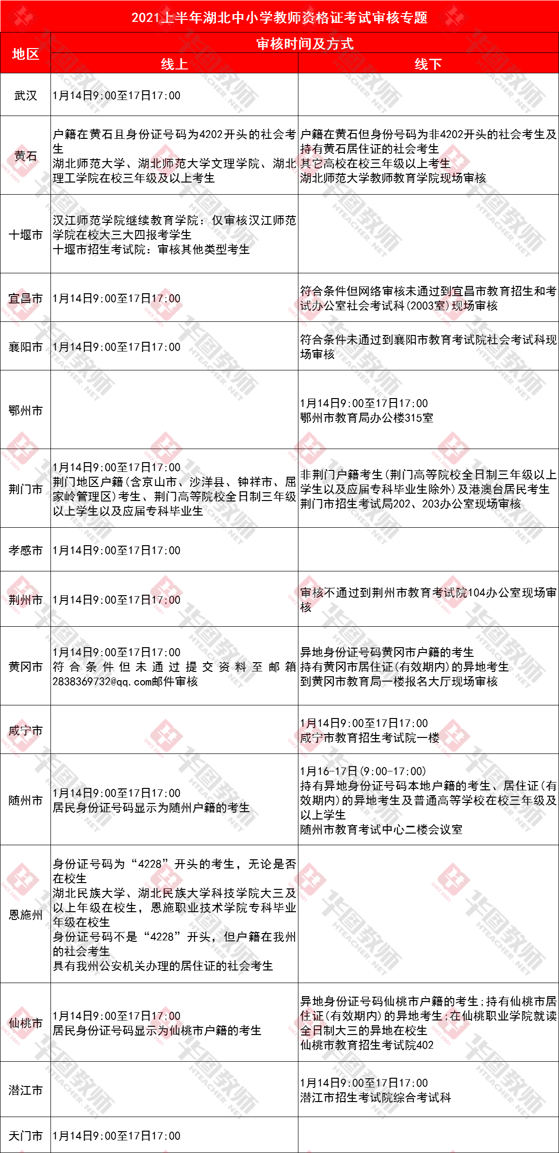 2021年上半年湖北教师资格笔试公告已发布,报名入口于1月11-14日开通,笔试时间为3月13日,考生可提前备考!