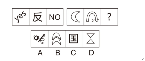 【解析】本题考查图形推理数量类封闭面个数。图形整体组成不同看数量,明显发现前一组图形每一个都有一个封闭面,根据这个规律,在第二组应用,所以应该选择只有一个封闭面的图形,abd选项都有两个封闭面,因此,选择c选项。