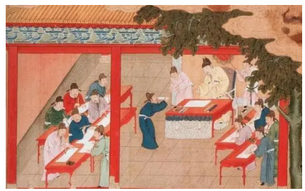 (3)完善:唐太宗时,增加了考试科目,以进士、明经两科为主(进士科诗赋,需要发挥创意方能及第;明经指通晓经学,重帖经墨义,只需熟读经书);唐高宗以后,进士科的地位超越了明经;武则天时,大量增加科举取士人数,首创武举(录取武将)和殿试(由皇帝主持,但直到宋代才成为定制);唐玄宗时任用高官(礼部侍郎)主持考试,提高了科举考试的地位。