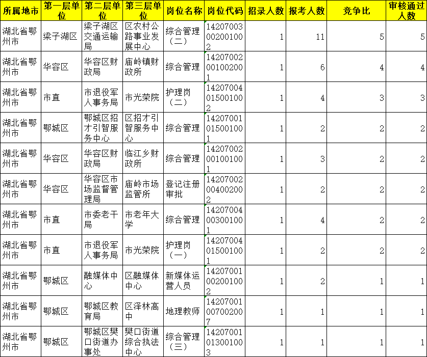 2022年鄂州事业单位考试共招录265人,今天为报名的第一天,报名人数已达295人,已有54人过审,最高竞争比高达5:1,其中梁子湖区交通运输局综合管理 (二)岗竞争最激烈,目前仍有78岗无人报考!详细报考情况查看下文!