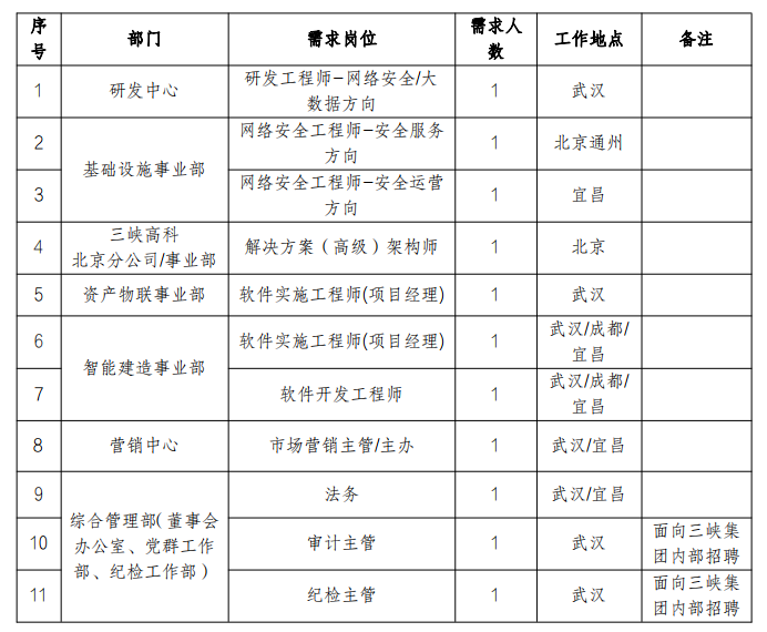 原标题:三峡高科信息技术有限责任公司2024年社会招聘公告(第一批)